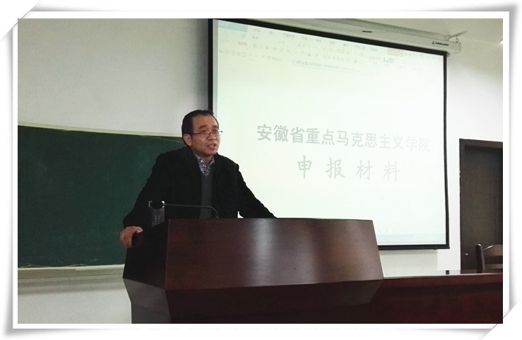 高正礼教授在报告中,结合安徽师范大学首批省马克思主义学院建设和全国重点马克思主义学院申报建设的丰富经历和宝贵经验,从马院发展、学科建设的来龙去脉、总体概况、工作情况、社会影响、顶层设计、发展规划、材料准备、长效建设等多方面,汇报了全省、甚至全国马院建设发展的前沿情况,并就我校申报省重点马克思主义学院提出了一些宝贵的建设性意见和建议。高正礼教授指出:高校马克思主义学院建设是中央理论建设工程“四大平台”建设的重要一环,搞好马克思主义学院的建设,关系到国家和学校发展的大局,希望我校借此机会重度重视、狠抓马克思主义学院及学科建设。最后,他就我校马克思主义学院发展提出四点殷切期望:齐心协力,发挥团队作用;教研相长,科研支撑教学;内外兼修,精气凝聚力量;统筹兼顾,品牌彰显特色。